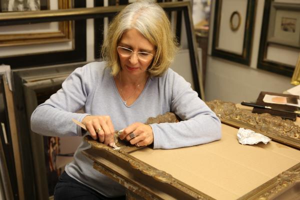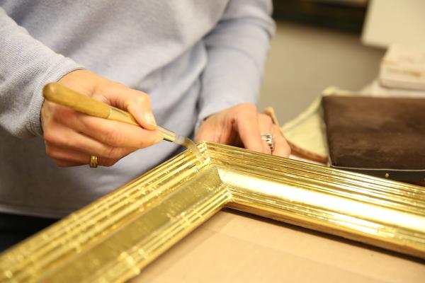 Hier gewähren wir Ihnen einen kleinen Blick in unsere Bilderrahmenwerkstatt und in unsere Vergolderei. Jedes Spezialgebiet hat einen eigenen Werkstattraum. Wie man auf den Bildern erkennen kann, ist unser Team mit Spaß und Herzblut bei der Arbeit.